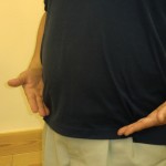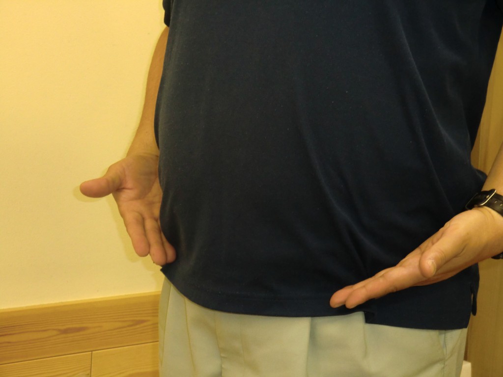 右の写真のようなお腹は、お化粧では隠すことも